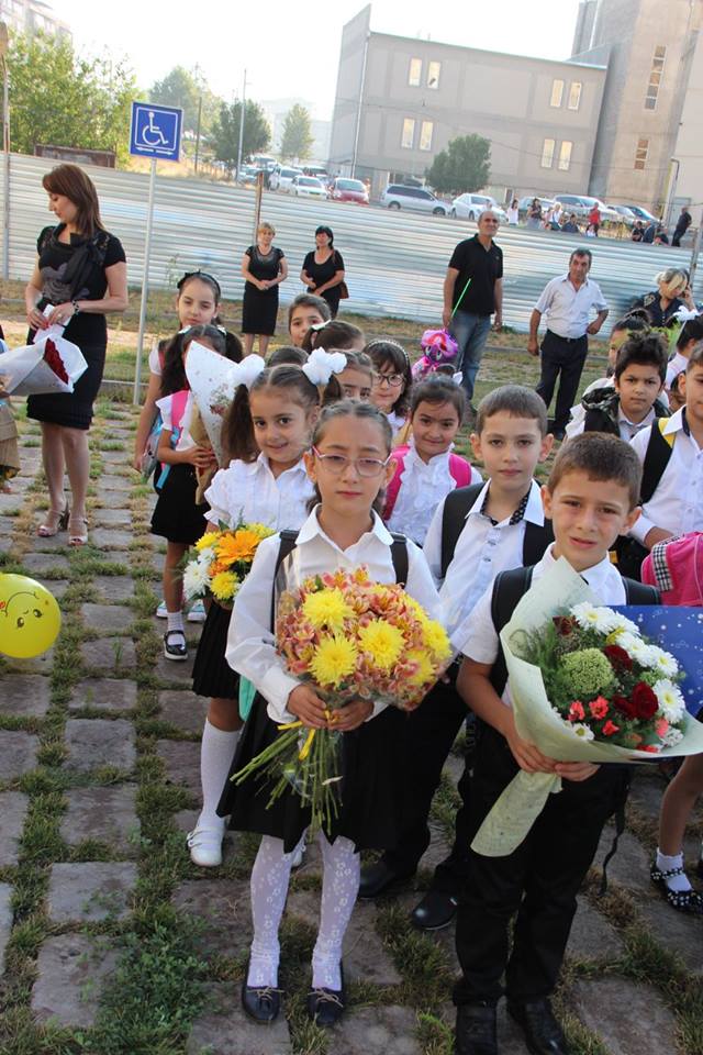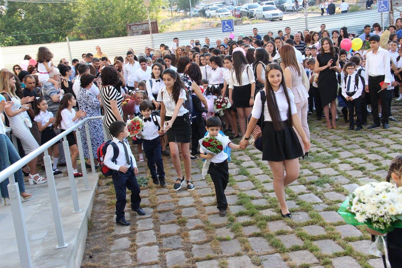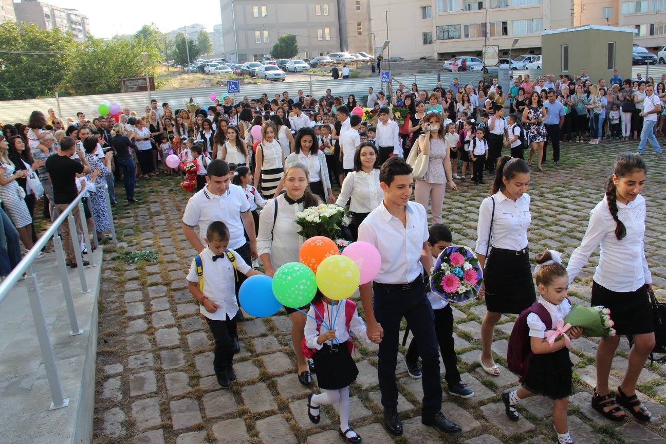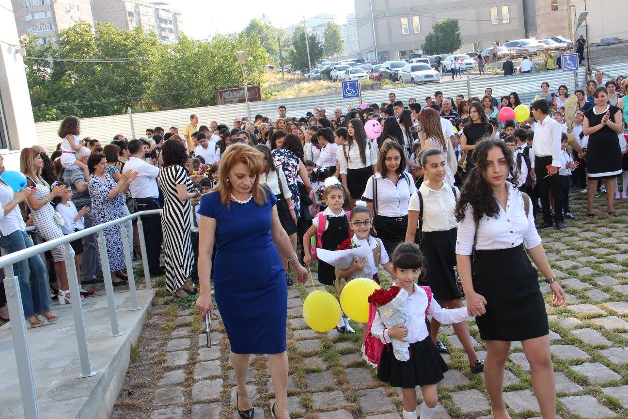 Տնօրեն Մ. Գեղամյանը շնորհավորեց աշակերտներին և ուսուցիչներին նոր ուսումնական տարվա կապակցությամբ: Նա ընթերցեց ՀՀԿԳՆ Ա. Աշոտյանի՝ գիտելիքի և դպրության օրվան նվիրված ուղերձը: Դպրոցական զանգի ղողանջի ներքո 9-11-րդ դասարանների աշակերտները դպրոց ուղեկցեցին 60 առաջին դասարանցիների, որոնք սրտի թրթիռով էին սպասում այդ օրվան: Միջոցառումը շարունակվեց նաև դպրոցի շքեղ դահլիճում, որտեղ ողջույնի խոսքով ելույթ ունեցան 1-11-րդ դասարանների աշակերտներ: