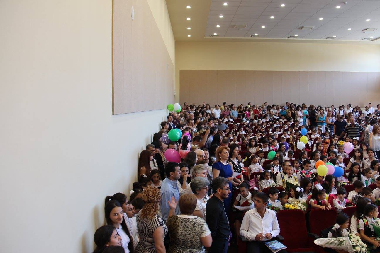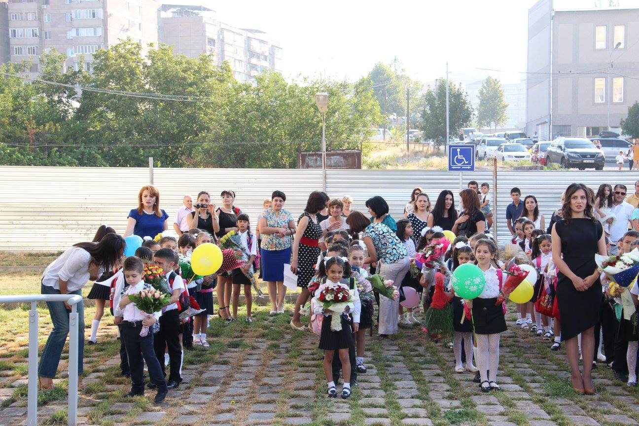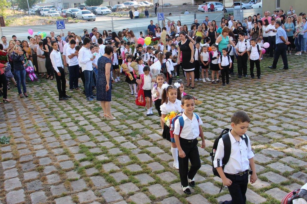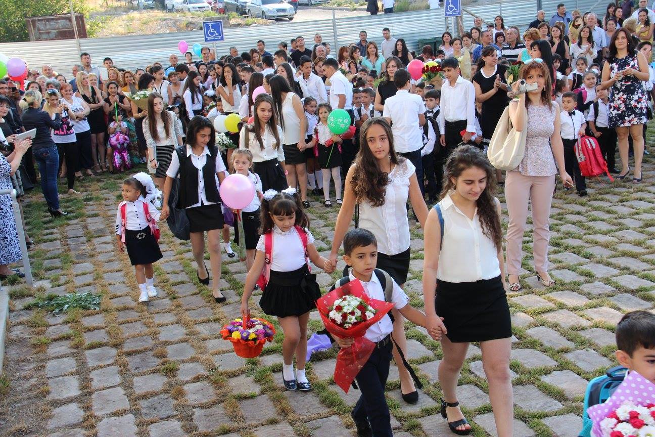 Տնօրեն Մ. Գեղամյանը շնորհավորեց աշակերտներին և ուսուցիչներին նոր ուսումնական տարվա կապակցությամբ: Նա ընթերցեց ՀՀԿԳՆ Ա. Աշոտյանի՝ գիտելիքի և դպրության օրվան նվիրված ուղերձը: Դպրոցական զանգի ղողանջի ներքո 9-11-րդ դասարանների աշակերտները դպրոց ուղեկցեցին 60 առաջին դասարանցիների, որոնք սրտի թրթիռով էին սպասում այդ օրվան: Միջոցառումը շարունակվեց նաև դպրոցի շքեղ դահլիճում, որտեղ ողջույնի խոսքով ելույթ ունեցան 1-11-րդ դասարանների աշակերտներ: