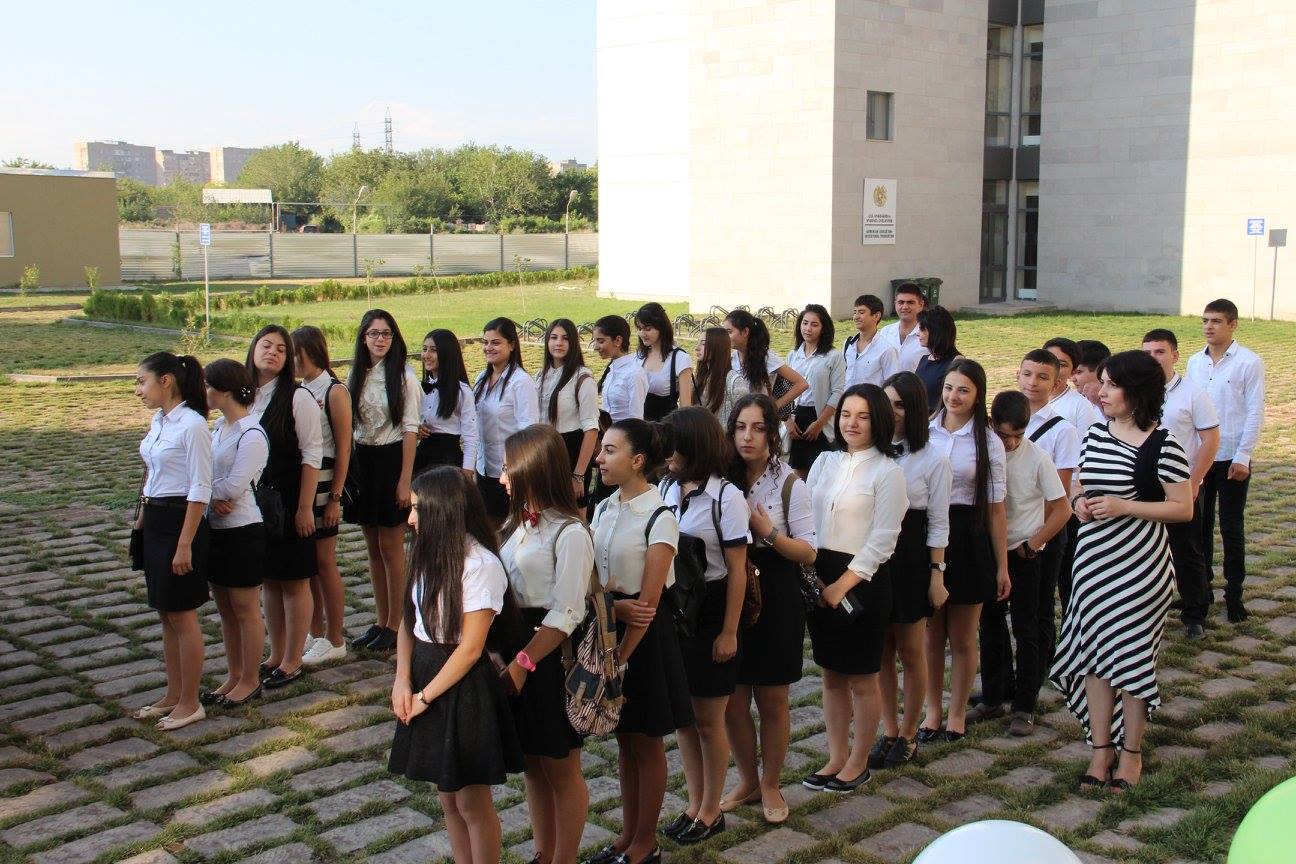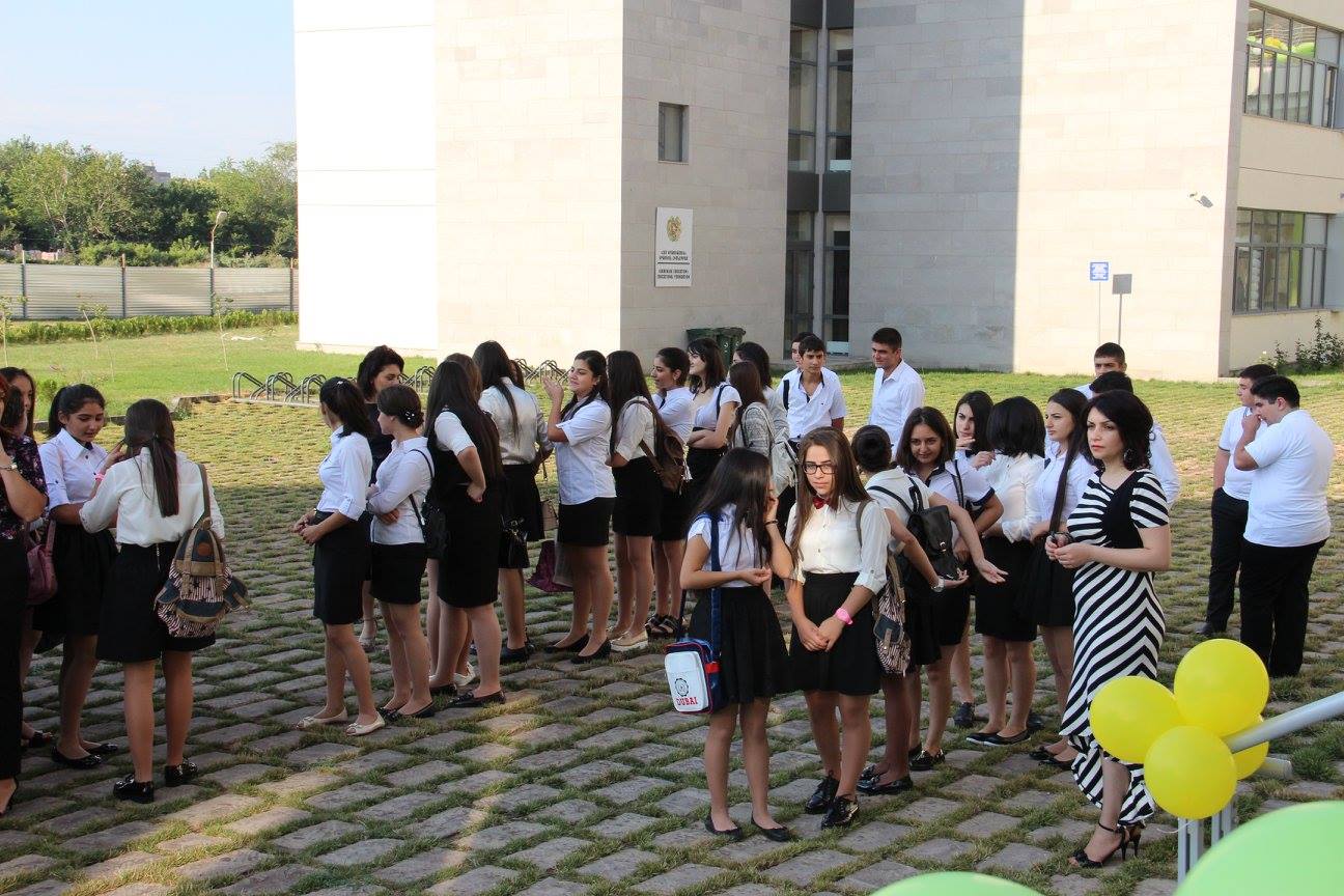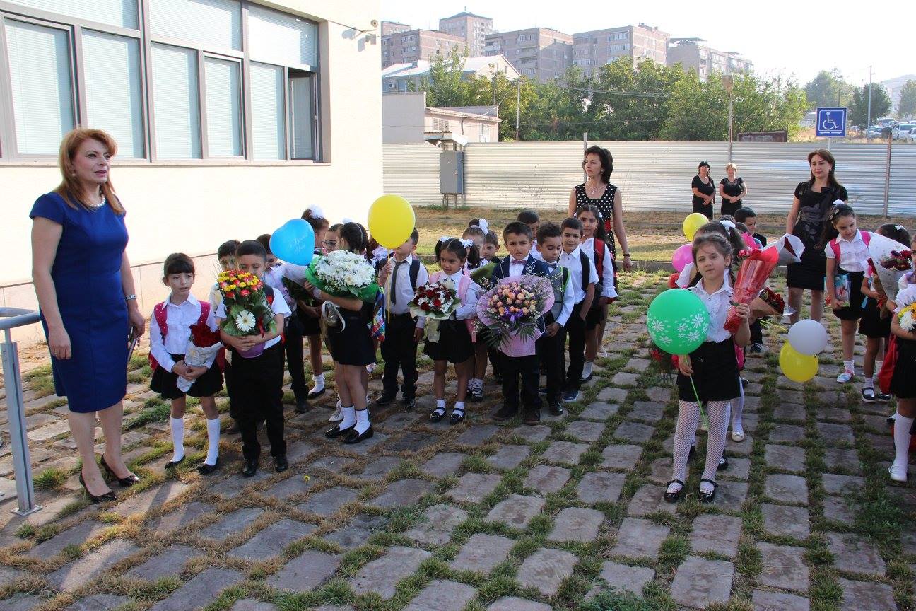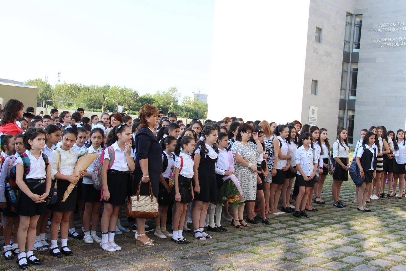Տնօրեն Մ. Գեղամյանը շնորհավորեց աշակերտներին և ուսուցիչներին նոր ուսումնական տարվա կապակցությամբ: Նա ընթերցեց ՀՀԿԳՆ Ա. Աշոտյանի՝ գիտելիքի և դպրության օրվան նվիրված ուղերձը: Դպրոցական զանգի ղողանջի ներքո 9-11-րդ դասարանների աշակերտները դպրոց ուղեկցեցին 60 առաջին դասարանցիների, որոնք սրտի թրթիռով էին սպասում այդ օրվան: Միջոցառումը շարունակվեց նաև դպրոցի շքեղ դահլիճում, որտեղ ողջույնի խոսքով ելույթ ունեցան 1-11-րդ դասարանների աշակերտներ:
