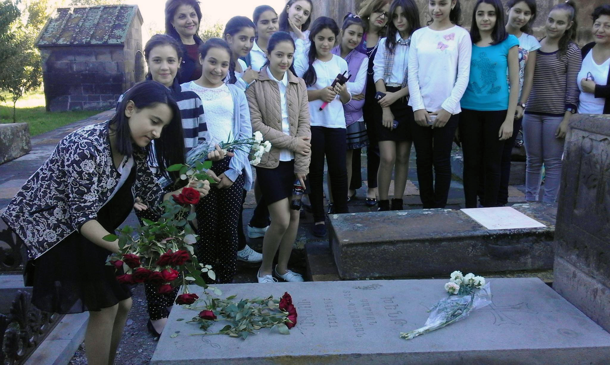 Ուրախալին այն էր, որ «Խենթի» հերոսուհու գերեզմանին մեզանից առաջ էլ այցելողներ էին եղել, վկայությունը՝ չորացած սպիտակ մեխակները, որոնց կողքին և շուրջը վարդ ու մեխակներ շարեցին մեր ութերորդցիները: