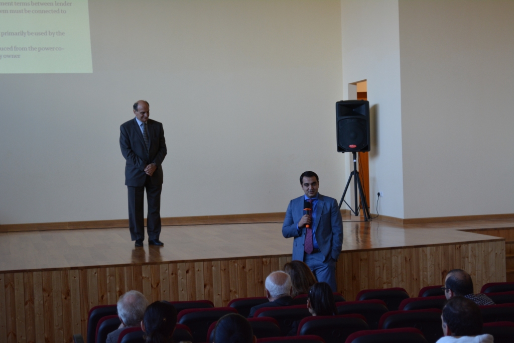 Միջոցառման հիմնական բանախոսն էր ամերիկահայ դոկտոր Փիթեր Գևորկյանը, ով արևային էներգետիկայի ոլորտում համարվում է միջազգային հեղինակություն և հանդիսանում է բազմաթիվ միջազգային համբավ ունեցող գրքերի և արդյունաբերական մասշտաբի բազմաթիվ կայանների նախագծերի հեղինակ, ներկայացրեց տարբեր երկրներում արդյունաբերական մասշտաբի արևային ֆոտովոլտային կայանների ներդրման տեխնոլոգիական, իրավական և քաղաքական խնդիրների և դրանց լուծման ճանապարհների միջազգային փորձը՝ Հայաստանում նշված ծրագրերի իրականացումը հաջողությամբ իրականացնելու հնարավորությունները: